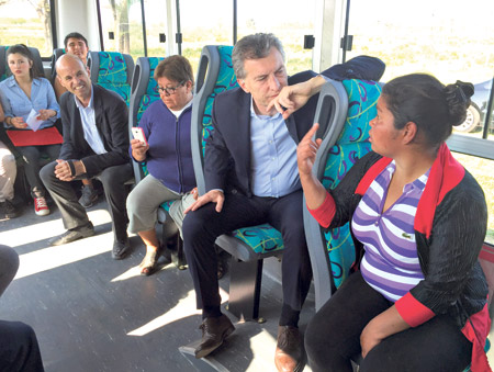 El presidente Mauricio Macri llegó de Nueva York y retomó la campaña. Llegó a Derqui y se subió a un colectivo de línea. Hizo un recorrido simbólico. Estuvo el tiempo suficiente para las selfies de ocasión en el marco del lanzamiento del plan de renovación de los corredores de transporte público.Las críticas al traspié diplomático de Mauricio Macri y a su entusiasta anuncio de la reapertura del diálogo con el Reino Unido sobre la soberanía en Malvinas –que luego tuvo que desmentir– no cesan. El diputado del Frente para la Victoria, Edgardo Depetri, afirmó que la política diplomática de Macri y el Gobierno de Cambiemos busca “desmalvinizar el reclamo soberano para favorecer los intereses del mercado y los negocios con quienes usurparon las islas”. Por primera vez el líder renovador Sergio Massa se refirió al papelón presidencial en la ONU en términos de oposición amigable y reclamó sostener “una política de Estado” sobre Malvinas: “Debe ser tratado con mucha seriedad” y “además la soberanía no puede ser manoseada o cambiada de un momento a otro por los cambios de gobierno”, sostuvo. “Sorprende la liviandad con la que Macri aborda un tema de enorme trascendencia para la mayoría de los argentinos, como lo es nuestra soberanía sobre Malvinas”, dijo el diputado Carlos Heller (PSol).