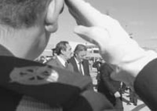 A la 1 y media de la tarde, a pleno sol y viento, Néstor Kirchner bajó del Tango 03 en la pista del aeropuerto internacional. Por un costado del edificio que un rato después quedaba habilitado llegó hasta cerca del palco oficial. Antes de subir se encontró con el público para iniciar el reparto de apretones de manos. “Pegue fuerte, pegue Kirchner, pegue fuerte”, se escuchaba desde el sector medio de la entrada al aeropuerto. El Presidente llegó hasta el palco como lo hizo en otros actos con mucho público y después casi debe reponerse por tantos tironeos. Desde allí, no dejó de sonreír mientras estuvo con Obeid, la vicegobernadora María Eugenia Bielsa, el arzobispo de Rosario y el presidente de la Conferencia Episcopal Argentina, Eduardo Mirás, y el ministro de Justicia, Horacio Rosatti, de un lado, y del otro con el intendente Miguel Lifschitz, el secretario general de la Presidencia, Oscar Parrilli, y el ministro del Interior, Aníbal Fernández, del otro.