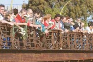 El homenaje terminó con un “florazo” para recordar a los obreros que se tiraron al Riachuelo mientras iban en camino a Plaza de Mayo para pedir por la libertad de Perón. En ese momento los bombos cedieron ante la marcha peronista que copó el lugar, mientras un centenar de claveles blancos caían al río y el puente, ya alejado de toda consigna partidaria, se transformó solamente en espacio de recuerdo de los descamisados.