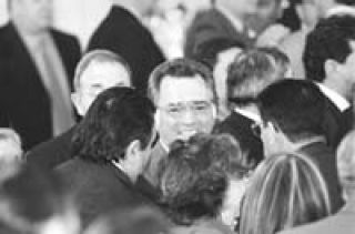 “Devuelvan lo que nos robaron”, gritaban los ahorristas golpeando cacerolas y más de uno tirando piedras contra los autos que adivinaban oficiales. En rigor, todo aquel que traspasara las compactas vallas policiales, previa exhibición de alguna credencial o invitación especial, pasaba a revistar en la categoría de “corrupto”. No eran muchos pero ninguno parecía compartir la idea del relanzamiento duhaldista. Al contrario, se conformaban sólo repitiendo que “éstos no van a durar más de una semana”. El ex ministro de Justicia bonaerense y actual diputado Jorge Casanovas apuró el paso entre la gente desencajada y los insultos lo cubrieron.