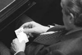 Por debajo de su corbata a lunares y entre sus dedos, podía verse un simple papel blanco en el que se destacaba un apellido: Antelo. Escrito en mayúscula e imprenta sobresalía del resto del mensaje que promediando la sesión de anteayer en el Senado, Raúl Alfonsín leía con cierto esfuerzo. Lo que aparecía escrito en cursiva era tan lacónico como claro: “Juez que hay que cajonear”. En épocas de bonanza del menemismo, según denunciara Domingo Cavallo, el ex ministro del Interior de Menem, Carlos Corach, habría anotado cómo controlaba a los 12 jueces federales porteños. Ahora en tiempos de malaria, todo está devaluado: un papelito, un nombre.