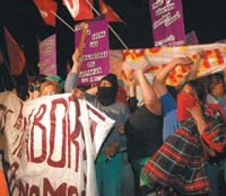 “Por el derecho a un aborto legal, seguro y gratuito”, decían los pañuelos verdes; y lo cierto es que no hubo un solo centímetro en los muchos metros cuadrados que ocupó la marcha de cierre del XX Encuentro Nacional de Mujeres –más de ocho compactas cuadras de manifestantes– sin ese distintivo que unificó las voces más diversas. La disidencia a esta consigna, que quisieron meter como una cuña grupos de mujeres católicas evidentemente organizadas –sus argumentos se calcaban de taller en taller– en las conclusiones de cada debate, desapareció literalmente cuando la marea verde empezó a avanzar por el centro de Mar del Plata. Y aunque el coro de voces gritó también su repudio a la visita de George Bush a esta ciudad, se hizo agitando los mismos pañuelos, para que no haya “ni una muerta más por abortos clandestinos”, como decía la bandera detrás de la que todas se encolumnaron.