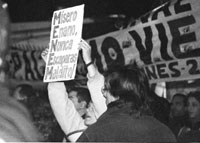 A pesar de que el reportaje se hizo vía satélite desde La Rioja, unos 40 asambleístas de Palermo y Villa Urquiza se trasladaron hasta la puerta del Canal 9, donde eran esperados por los seguidores de Menem. Fue así como los primeros caceroleros en llegar fueron golpeados y perseguidos a las trompadas, y hasta un camarógrafo y un cronista del canal Todo Noticias recibieron agresiones.