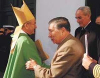 “El obispo castrense monseñor Antonio Baseotto oficiará la ceremonia”, dijo el oficial de la Armada y apareció el sacerdote con todos sus atributos recortado sobre los inmensos vitrales de la catedral Stella Maris. Ajeno a los cuestionamientos del Poder Ejecutivo que lo desconoce en esa función, se calzó la mitra, el gorro punteagudo símbolo de esa jerarquía, y saludó a los feligreses. El motivo de la misa, convocada por los militares de las tres fuerzas, era recordar los veinticuatro años de la derrota de la Guerra de Malvinas. “Nuestra presencia aquí es la expresión de reconocimiento a aquellos que dieron su vida en la gesta de Malvinas”, leyó Baseotto, se lamentó del “homenaje parcial” que reciben los combatientes que, a veces, “son más reconocidos por el enemigo” y abundó en que “en mi larga vida, la única vez que sentí a los argentinos unidos fue durante esa gesta”. Desde uno de los primeros bancos, el ex gobernador de facto de las Islas Malvinas, Mario Benjamín Menéndez, descalificado por cobarde en el Informe Rattenbach, observaba satisfecho.