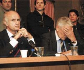 –Debo confesar algo: a raíz de un atentado terrorista de los idealistas tengo afectados los tímpanos –replica Etchecolatz, por los abucheos.