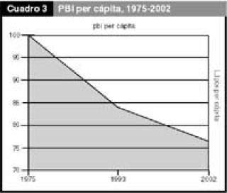 En un trabajo titulado “La catástrofe social”, el economista Claudio Lozano señala que luego de un cuarto de siglo de neoliberalismo el PBI per cápita de la Argentina es un 23 por ciento inferior al de 1975 y más de la mitad de la población ha caído bajo la línea de pobreza, porcentaje que llega a dos tercios entre los menores de 18 años, como muestra el cuadro 3. Si el análisis se reduce al período recesivo iniciado en 1998, la desocupación ha trepado un 74,2 por ciento, la pobreza un 67 por ciento y la indigencia un 180 por ciento. En los cinco primeros meses de este año la caída promedio en los ingresos ascendió al 21,6 por ciento, con una proyección de deterioro para todo el año del 45,5 por ciento. El ingreso promedio de los asalariados sería, a finales del 2002 un 66,7 por ciento inferior al de la última presidencia de Juan D. Perón, en 1974. “Una estrategia distributiva no sólo es imprescindible desde el punto de vista ético, sino que es factible dados los actuales recursos económicos y la profunda desigualdad existente”, aduce Lozano, quien calcula que el consumo total del país permitiría que 128 millones de personas estuvieran por encima de la línea de pobreza y 300 millones por encima de la de indigencia. O, dicho de otro modo: para suprimir la indigencia sólo sería necesario redistribuir el 2,5 por ciento del consumo total de los hogares y para que no hubiera más pobres el 14,8 por ciento. Si, en lugar de promover esa redistribución, se mantuviera el rumbo actual, a fin de año habría 23,1 millones de pobres, es decir dos de cada tres argentinos, y 11,4 millones de indigentes, o uno de cada tres. “Son estos los datos que hay que poner en el centro del análisis al evaluar los asesinatos y la represión del miércoles 26 de junio en Avellaneda. La profundización de la desigualdad y la decisión de mantener políticas que la promueven destruye el sistema democrático y reclama un formato institucional que cercene las libertades y consolide un orden de creciente autoritarismo”, sostiene. En tal contexto, la competencia electoral tal como está planteada, sin relación alguna con esta catástrofe social, lejos de cerrar profundizará la brecha entre representantes y presuntos representados.