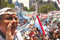 Alonso había llegado a la plaza con la delegación de Gualeguaychú, que ayer cumplió 22 días de corte de ruta contra la instalación de Botnia. Otros habían viajado desde Esquel, San Juan, Ledesma, La Rioja, Mendoza o el conurbano.