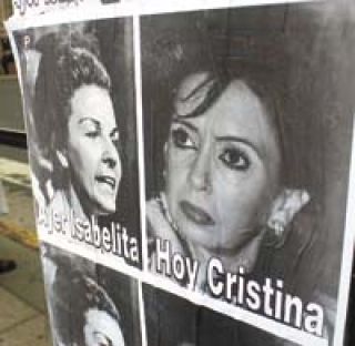 “Ayer Isabelita, Hoy Cristina”, rezaban los carteles que aparecieron ayer empapelando el centro porteño, firmados por un sarcástico “Frente Verticalista para la Victoria (FPVP)”. En lo que puede ser el comienzo de una campaña sucia entre los distintos sectores que pelearán por instalar su candidato a la presidencia, el texto estaba acompañado por las fotos en blanco y negro de la ex presidenta María Estela Martínez de Perón y de la senadora Cristina Fernández de Kirchner. Los afiches se jactaban del paralelismo entre la viuda de Perón y su triste paso por la Casa Rosada, y la posible candidatura de la actual primera dama para acceder al sillón de Rivadavia.