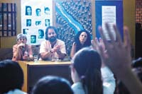 La abuela de Plaza de Mayo Alba Lanzillotto, Eduardo Nachtman de HIJOS y Susana Reyes, una docente ex desaparecida, hablaron con los alumnos de sexto y séptimo grado sobre las historias personales que fueron atravesadas por el horror de la dictadura.