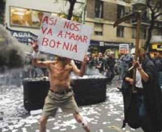 En Capital, se hicieron oír frente a la Embajada de Finlandia. Unas 200 personas, entre ambientalistas y militantes de izquierda, protestaron contra la inminente apertura de la fábrica. “Finlandia pirata”, decían las banderas. Algunos manifestantes llevaban mascarillas que cubrían sus rostros e hicieron detonar cuatro bombas lanza panfletos. En medio de la humareda emergió un hombre semidesnudo con un cartel que decía “así nos va a matar Botnia”, y comenzó a correr perseguido por una figura de negro con una guadaña que representaba a la muerte.