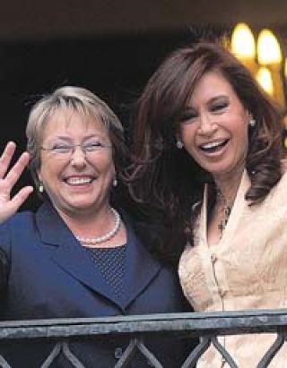 “Son estas cosas del destino que el primer encuentro que tengo como presidenta electa con un mandatario extranjero sea con una del género, como Michelle”, dijo Cristina Kirchner. También recibió en Chile el saludo del presidente de Brasil, Lula da Silva.