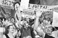 Cada jueves hay más gente pidiendo la renuncia del tribunal supremo. Ayer eran más de 4000 y hubo escrache en las casas de Nazareno y Boggiano. Aparecieron los “no pesificados”.