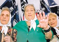 Durante su clásica ronda de los jueves a la histórica pirámide, la Asociación Madres de Plaza de Mayo se sumó ayer a los repudios de los organismos de derechos humanos contra el fallo de la Corte Suprema que permitiría al ex subcomisario Luis Abelardo Patti asumir como diputado nacional. A su vez, llamaron a “impedir” dicha asunción. “Una vez más la llamada ‘Justicia’ nos defrauda y traiciona. Esta vez la Corte Suprema da el aval para que el asesino Patti jure como diputado”, dijo Hebel de Petrini y agregó que las “horroriza pensar en esa posibilidad”. “Mil veces dijimos y diremos no”, insistió. Por su parte, al cerrar el acto la titular del organismo, Hebe de Bonafini, sostuvo que “nada impedirá que las Madres sigamos adelante con el proyecto de nuestros hijos. Trabajando y haciendo. No importa lo que digan los Patti y todos los demás. Ellos son cobardes y asesinos, las Madres trabajamos para derrotarlos”. Ya por la tarde, las Madres de Plaza de Mayo realizaron un acto en la Villa 20 del barrio porteño de Lugano por el inicio de la construcción de un nuevo complejo de urbanización y viviendas. Bonafini aseguró que “todos tenemos que aportar a hacer un país diferente, el que nos merecemos todos, el que soñaron nuestros hijos con erradicar las villas” y señaló que allí “todos van a tener trabajo construyendo sus propias viviendas, como hacemos en otros barrios”.