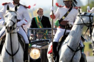 Durante tres horas desfilaron militares, campesinos, jugadoras de fútbol y hasta una murga gigante. En el palco oficial, los comentarios hacían foco en CFK y en Dilma Roussef, la elegida por Lula para sucederlo.