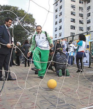 Al rato comenzó el segundo tiempo. Las fuerzas seguían desniveladas: entre el cura, el milico y el Macri que portaba trapito y limpiavidrios (los mismos que su otro yo de la vida real intenta prohibir con su código contravencional), con la ayuda del árbitro, eran demasiado para los intentos de delanteros que se prendían al desafío. Hasta que alguien aportó la solución y el fútbol se tornó un tiro al blanco humano. Cada impacto de la pelota (inofensiva, de goma espuma) sobre los malos era festejado como un gol.