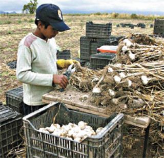 El ministerio de Trabajo de Mendoza detectó campamentos donde se explota el ilegal trabajo infantil para la cosecha de ajo y zanahoria, en terrenos arrendados mediante una licitación al Ejército en la guarnición Campo de los Andes, a cien kilómetros de la capital provincial. El último procedimiento se realizó la semana pasada. El gobierno provincial dijo que no había puesto lo sucedido en conocimiento del Ministerio de Defensa. La superficie cultivada de ajo en Mendoza asciende a 12.127 hectáreas. En 2009 las exportaciones de ajo a Brasil, Europa, Estados Unidos y México llegaron a 79 millones de dólares, que este año podrían hasta duplicarse. Los principales contratistas del Comando de Remonta del Ejército son miembros de la Asociación de Productores, Empacadores y Exportadores de Ajos y Cebollas de Mendoza (Asocam), que concentra el 80 por ciento de la producción de ajo del país, de la cual menos del 20 por ciento va al mercado interno. El presidente de Asocam, José Spitalieri, es el propietario de Gispe S.A., una de las empresas en las que se documentó la infracción. El acta de infracción menciona “distintas circunstancias que ponían en riesgo inminente la salud y la vida de los ocupantes de las carpas”. El riesgo no es una hipérbole. Por lo menos dos niños murieron por esas condiciones indignas de explotación en el predio militar: Roberto Carlos Aparicio se ahogó en un canal de agua y Blanca Coredo Uscucil fue aplastada por un árbol que cayó sobre la carpa que habitaba con otros trabajadores.