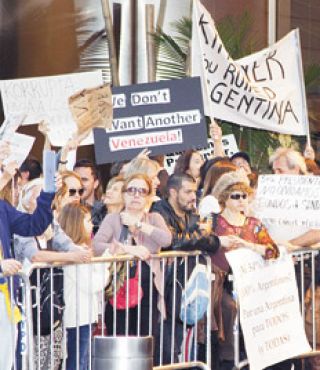 Un grupo de manifestantes protestó ayer contra la presidenta Cristina Fernández de Kirchner en la puerta del Hotel Mandarin Oriental, frente a Columbus Circle, en el que se aloja durante su estadía en Nueva York. Munidos con carteles tanto en castellano como en inglés, y algunos de ellos golpeando cacerolas, los argentinos (algunos residentes y otros de paso) permanecieron cerca de dos horas frente al hotel causando algunos inconvenientes a la policía local, que custodiaba el lugar donde ayer estaban alojados media docena de jefes de Estado, hasta que finalmente lograron que se desalojara.