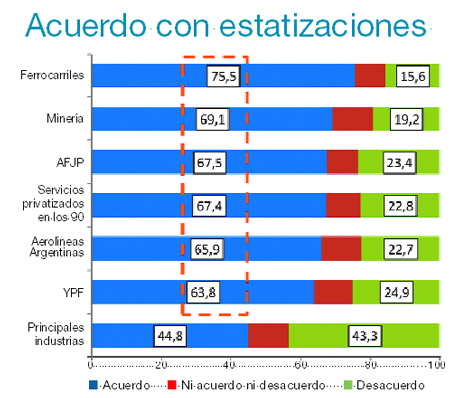 No es el mayor nivel de acuerdo con las estatizaciones. El número uno corresponde a los ferrocarriles, con el 75,5 por ciento.