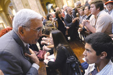 “Eso no es el reflejo de la sociedad argentina, pero sí son hordas asesinas cargadas de odio que no quieren vivir en un país en paz”, sostuvo el presidente de la DAIA, Julio Schlosser, en declaraciones a la Agencia Judía de Noticias (AJN). “Venir a un acto de recordación, donde estamos todos compungidos recordando seis millones de hermanos, entre ellos un millón de chicos que fueron asesinados por las hordas nazis, como estos que están acá, indica que no entienden la comprensión y no quieren vivir en un país en paz”, lamentó Schlosser. Agregó que “ellos, lo que quieren es otra cosa, por lo tanto debemos excluirlos”.