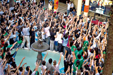 Saludó sonriente, bailó un cachito al son de las consignas. Pareció salir, tomó recién entonces un sorbo de agua, le echó un vistazo a su reloj pulsera. No le habrá parecido tarde o demasiado trajín: retomó el micrófono, hizo una suerte de “bis” del discurso y se quedó saboreando el regreso.