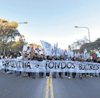 Miles de personas se manifestaron ayer frente la Embajada de los Estados Unidos bajo el lema “Argentina o buitres” para repudiar la decisión de la Justicia estadounidense que favoreció a los fondos buitre que litigan contra el país. El “banderazo” convocado por las organizaciones kirchneristas Tupac Amaru, el Movimiento Evita, Militancia Popular, la John William Cook, el Partido Humanista y Actores por Cristina, arrancó en el Obelisco con una caravana que llegó hasta la sede diplomática en el barrio porteño de Palermo. Allí, cantaron el Himno Nacional antes de desconcentrarse.
