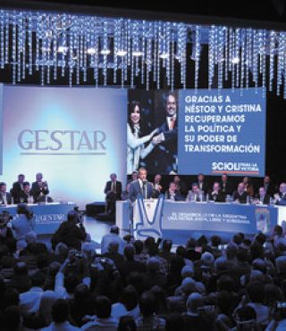 - Souvenirs: Durante los debates que se dieron más temprano, se repartieron libros, revistas y posters de Gestar y con la consigna Scioli 2015 y Peronismo con Scioli. Los más preciados eran unos carteles con la mano haciendo la V de la victoria, que es el signo del Instituto Gestar.