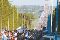 Una marcha hacia el puente que cruza a Uruguay como la del domingo es lo más parecido que se pueda uno imaginar a Los argonautas de la cosmopista, el cuento de Julio Cortázar. Con un comunicado corto pero contundente pidiendo que se respete el tratado del río Uruguay, y que ni los Estados ni la banca internacional financien la construcción de las papeleras, la marcha se concretó a lo largo de 37 kilómetros sin que alguien se quejara. Se llegó al puente, se cantó el Himno, se volvieron a casa. Pero tardaron para ello entre 8 y 12 horas. Cien mil personas en marcha por una ruta de un solo carril son una infinita fila de coches en el horizonte. Y luego, bajados de sus asientos, son una columna tan larga como la que cuentan los mayores hubo en Ezeiza cuando lo del regreso de Perón. Después de una lluvia que el sábado hacia temer por las condiciones para la marcha histórica –como había sido promocionada– un día de sol espléndido y viento helado hizo que el acto contra la construcción de las papeleras fuera no sólo un éxito, sino un paseo tan largo como una procesión a Luján, pero sin ningún vendedor ambulante en todo el camino.