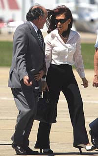 Los brasileños entraron al hotel para registrarse. Uno llevaba la camiseta argentina con el número 18 y el apellido de Lionel Messi en la espalda. “¿Ese forma parte de la comitiva?”, preguntó con sorna un corresponsal asignado a Brasil desde hace mucho tiempo. El brasileño con la camiseta oficial Adidas encaró con su familia para los ascensores. Quiso tomar el más cercano, pero un botones vestido de negro estaba trabando la puerta con el pie. El brasileño no lo sabía, el ascensor estaba reservado para que la presidenta electa de la Argentina pudiera subir rápido a su habitación. Cuando el fanático de Messi desapareció del lobby, los periodistas argentinos se entretuvieron con otro invento: un lustrador eléctrico de zapatos que estaba al costado de la puerta principal. Los zapatitos lustrados luego caminaron nerviosos para tratar de lograr una frase de Cristina Kirchner. Ahí no hubo tanto brillo.