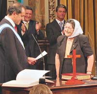 Sara Derotier de Cobacho, Madre de Plaza de Mayo y hasta ahora subsecretaria de Derechos Humanos de la provincia de Buenos Aires, asumió como titular de la cartera. “Nunca lo había querido aceptar antes (se refiere al cargo) porque estaba confundida, pero éste es un momento muy especial”, dijo Cobacho a la prensa. Militante peronista, Cobacho estuvo desaparecida en 1976 y luego siguió presa a disposición del poder militar. Su vida fue signada por el secuestro de sus hijos Oscar Manuel y Enrique Ramón, su nuera María Elena Gómez y su yerno Eduardo Oscar Danielis.