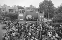 “El nombre para este festival, ¡Arriba!, lo decidimos a principios de este año, cuando todo estaba igual de mal que ahora, pero la gente tenía más tensión”, cuenta Pasa. “Quiere decir ‘¡Vamos, loco!’, es un llamado a poner todo, a decidirse a hacer cosas. Ahora, después del crecimiento que tuvo el Buen Día, algunos nos dicen que ya no es un festival under, ni vanguardista. Pero este festival nunca tuvo objetivos de hacer vanguardia artística ni culto a la independencia. Surgió como una locura de pibes de veinte años, a partir de la idea de borrar los límites entre la música y otras cosas. Eramos varios amigos artistas que hacíamos cosas, y decidimos juntarnos, hacerlas juntos. Esa es la filosofía del Buen Día. Si tenés amigos que hacen cosas, juntalos y háganlas juntos.”