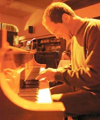 –El papel rítmico es el que menos me interesa. Cuando hablamos con Pablo, lo que le pido es que no trabaje muy rítmicamente. Prefiero que el bandoneón sea más un color. Incluso, eso permite que el piano también cumpla una función colorística, más independizada de la armonía y el ritmo. Ayer, por ejemplo, estábamos pasando en dúo un arreglo nuevo que hice de Orgullo criollo. Toda la primera parte de mi solo empieza con un desarrollo del motivo melódico del tema, tocado por él. El va jugando y yo comienzo acompañándolo y, de a poco, voy jugando también sobre las variaciones suyas. Yo trabajo sobre lo que él modifica. En esta música es fundamental el diálogo. Es interesante esa obligación permanente de escuchar al tipo con el se está tocando.