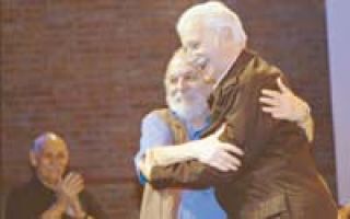En este homenaje no faltó nada, y menos la reflexión sobre el propio país. Tampoco el recuerdo de la participación del autor en asuntos relacionados con la vida política y cultural, básicamente su participación en Teatro Abierto 1981 y su cargo de secretario de Cultura entre 1984 y 1986. Se habló de etapas dentro de su dramaturgia (sobre todo de la segunda y metafórica de Los hermanos queridos y El acompañamiento) y de su pasión por escribir sin olvidar el entorno. En ese tramo se escucharon las opiniones del dramaturgo Roberto Cossa (en video), mientras que en escena aportaban Pepe Novoa (quien fuera intérprete de El lugar y El frac rojo y de dos puestas de Aeroplanos, una con Carlos Carella y otra con Claudio García Satur); también de Jorge Rivera López, quien se refirió a la nostalgia del autor como “dolor por el propio país”; y de la dramaturga, escritora y guionista Aída Bortnik, quien recordó que la primera vez que recibió un premio coincidió con el que le entregaron a Gorostiza. Y ahí se hicieron amigos. Para ella es un troesma –dijo–, como lo es Carlos Gardel. “Y ¿por qué no? Tiene pinta”, apuntó. Fue también Bortnik quien se refirió a la cíclica experiencia de frustraciones y esperanzas de los argentinos y a la indiscutida fraternidad de un Gorostiza que –según confesó– “le permite mostrarse y ser frágil”. El placer de compartir la velada se extendió al actor y director Villanueva Cosse (el Pericles de Toque de queda, el primer estreno del autor en el Teatro San Martín). Otro rescate sobre El acompañamiento dio lugar a un hecho regocijante: se pudo ver en video al autor actuando su propia obra, acompañado, también como actor, por Roberto Co- ssa (el suceso se dio en un ciclo de Teatro Leído). Cossa lucía allí una boina y su compañero, chambergo y chalina. “¡Quién lo hubiera dicho!” Después de cincuenta años sin actuar (su último trabajo había sido el del Comisario de Crimen y castigo, de Fédor Dostoievsky), Gorostiza componía a Tuco, aquel aspirante a cantor que a través de su locura intenta alejar el fracaso.
