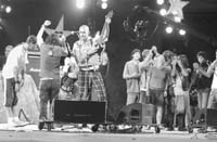 La noche del viernes tuvo sus emociones. El set de Attaque 77 se elevó por sobre el resto a base de contundencia musical e ideológica. Para ponerlo en claro: el del cuarteto punk que alguna vez fue apenas entusiasta grupo de seguidores de Los Ramones y hoy es una madura, combustible banda de rock, fue el show más político del festival (y no solamente por el minuto en memoria de los piqueteros Kosteki y Santillán). Las canciones de Attaque conllevan un mensaje humanista que pocos artistas argentinos transmiten hoy: hablan de dignidad, tolerancia, unidad, respeto por el prójimo. Es una banda justicialista en el más estricto sentido del término. Su idea de una sociedad más justa se puede resumir, por ejemplo, en una frase tan simple pero expresiva como “un poco de suerte para el pobre”. Es llamativo y destacable cómo logran que ese mensaje llegue a su numeroso público adolescente, rebote y se eleve en forma de auténtica comunión. Nadie asegura que los miles de pibes que se agitan al ritmo de las guitarras eléctricas de Ciro Pertusi y Mariano Martínez lleguen a concretar esas ideas de un mundo mejor. Pero algo debe quedar en sus cabezas y corazones. “Creemos firmemente que la única salida para la crisis es un pueblo unido”, dijo Pertusi antes de invitar a todos los músicos que tuvieran ganas de subir al escenario, para cantar y divertirse con la contagiosa “Donde las águilas se atreven”. “Verán pasar mil años, verán muchos caer, pero si nos juntamos, no nos van a detener”, cantaron integrantes de la 25, El Otro Yo, Karamelo Santo, Kapanga y El Otro Yo, mientras se agitaban brazos, banderas, bengalas, pasión. Sin haber concluido el festival, la imagen resulta una de las grandes postales de esta versión 2003.