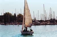Aprender a timonear, cuando no se tiene experiencia alguna que refrende esa vocación, no es menos fascinante. Llegar una calurosa y transparente mañana de marzo al puerto de San Isidro para subirse por primera vez a no sé que barco, con no sé quién y a hacer cosas que hasta entonces eran capítulos de una ciencia infusa, sólo se explica por ese afán de comerse la vida a cucharadas que a veces gana el alma. Porque se va. Porque se intuye más bella de lo que pareció hasta el momento o, simplemente, porque hay que compensar al corazón. Así, de repente y bajo guía docente, empiezan los descubrimientos, estimulantes como un juego de chicos. Llevar el timón a la derecha orienta mágicamente la proa hacia la izquierda (es decir, en la insospechada dirección opuesta). Lo más osado es orzar, virando el barco para quedar 45 grados en dirección al viento. No más, porque las velas flamearían alborotadamente, descubriendo el error de la maniobra; ni menos, porque un velero plenamente enfrentado a la corriente de aire se planta indefectiblemente como un auto sin motor. Entonces podría sobrevenir uno de los tantos bochornos posibles de los aprendices. Otro es paralizarse con indisimulado desconcierto ante el fárrago de términos ignotos que sólo con el correr de unos cuantos sábados comienzan a resultar un poquito más familiares. Hay que sobreponerse con dignidad a la sorpresa de “obenque”, “fogonadura” o “cockpit” y disimular las connotaciones nada deportivas que a un principiante le sugieren “el amante de rizo”, “amantillo”, “macho” u “obra muerta”.