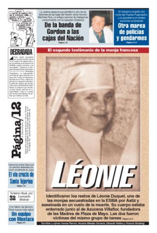 Identificaron los restos de Léonie Duquet, una de las monjas secuestradas en la ESMA por Astiz y asesinada en un vuelo de la muerte. Su cuerpo estaba enterrado junto al de Azucena Villaflor, fundadora de las Madres de Plaza de Mayo. Las dos fueron víctimas del mismo grupo de tareas