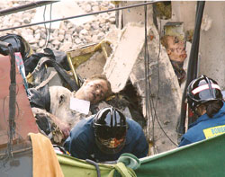 “Iba en el tren, como todas las mañanas, y cuando sentí las explosiones pensé que habíamos chocado. Entonces vi que el vagón de atrás había saltado por los aires y que los que podían andar salían huyendo en estampida por las vías. Yo me quedé a ayudar, a sacar los heridos. Estaban todos reventados... los cuerpos... tenía a una chica en los brazos y la hemos perdido... Se me murió en los brazos.”