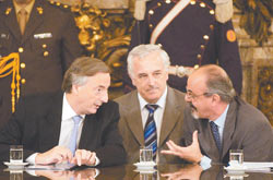 “Tanto Kirchner como Tabaré (Vázquez) son dos gobernantes que han demostrado saberse mover en aguas muy difíciles y, obviamente, esto no quiere decir que uno esté de acuerdo en todo; es decir, uno nunca está de acuerdo con todas las letras de la murga, pero la murga está sonando bastante bien. No soy politólogo ni sociólogo, pero por el olfato que uno tiene después de hacer tantos años Carnaval y de estar entre la gente, yo creo que hay lazos indisolubles entre los pueblos que, apenas se dilucide esta crisis, nos van a hacer salir fortalecidos, como las parejas que se aman mucho.” (De Rafael Castro, director y fundador de la murga uruguaya Falta y Resto.)