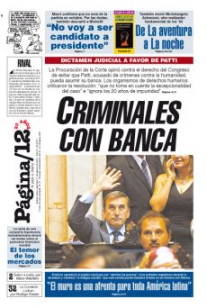 DICTAMEN JUDICIAL A FAVOR DE PATTI: La Procuración de la Corte opinó contra el derecho del Congreso de evitar que Patti, acusado de crímenes contra la humanidad, pueda asumir su banca. Los organismos de derechos humanos criticaron la resolución, “que no toma en cuenta la excepcionalidad del caso” e “ignora los 20 años de impunidad”