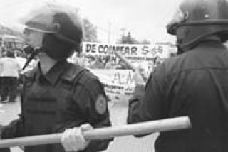 Palos en mano, unos 40 policías cubrían en la tarde de ayer el frente de la terminal del ex ferrocarril Belgrano en el barrio porteño de Retiro mientras otros 60 custodiaban los alrededores. A pocos metros y enfrentados, unos 50 puesteros desalojados sostenían sus banderas y esperaban. La situación se había calmado después de casi seis horas de tensión, durante las que se repitieron choques entre policías y vendedores, en medio de gritos desesperados, corridas y forcejeos que culminaron con cinco puesteros detenidos, uno de ellos herido y un policía también con heridas. Pero el conflicto no fue resuelto ni parece posible que se solucione en los próximos días, si se atiende a lo que dicen los funcionarios del Gobierno de la Ciudad de Buenos Aires y vendedores.