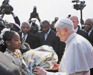 Benedicto XVI llegó ayer a la tarde a Yaundé, capital de Camerún y primera etapa de un viaje de una semana que también lo llevará a Angola. En la pista del aeropuerto local lo aguardaba una comitiva de autoridades de gobierno y religiosas encabezada por el presidente de Camerún, Paul Biya, que lo acompañó luego hasta la ciudad capital, engalanada con fotos suyas y banderas locales y del Vaticano, agitadas por un gran número de fieles católicos. Estaba todo listo para escucharlo hablar.