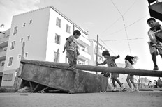 “Hay criaturas, niños. Estuvieron toda la noche. Si entran va a ser una masacre”, dice el “chalequero” mientras indica los edificios amarillos, de tres pisos, nuevitos. “Son ésos, padre.” Dos muchachos se suman para custodiar la retaguardia. Alrededor de los edificios en cuestión, hay un mundo de carritos con cartón y autos destartalados. “¡Abran!”, ordena el “chalequero”. Detrás del tabique, el grito se responde con otro grito, el de los chicos que cantan a coro: “¡No nos saquen! ¡No nos saquen!”.