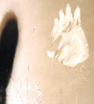 En el medio se ve, horrorosa, la marca negra sobre el amarillo, de una mano más tremenda. No está a la altura de los hombros, ni de la cintura: está a escasos centímetros del piso. ¿Había caído? ¿Se habrá levantado? ¿Quién era? No se mueve, sus dedos no dejaron marcada una estela, están fijos, sus límites son precisos, hay presión, hace fuerza contra el muro. Presiona, está viva, pero inmóvil.