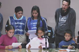 “El hambre es un crimen” y “Ningún pibe nace chorro” eran las frases inscriptas en las pecheras que llevaban puestas los niños, niñas y adolescentes que circulaban por la sala 1 del anexo de Diputados, minutos antes de que las cien personas atendieran a los oradores. Se encendieron los micrófonos y la palabra la tuvieron ellos: Yésica, Joaquín, Caty, Gabriela y Axel se turnaron para leer su “Carta abierta a los legisladores argentinos”.