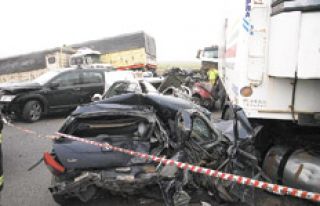 Una tormenta de viento y tierra se convirtió en una trampa mortal para quienes circulaban ayer por la mañana por la autopista Córdoba-Villa María. Un choque en cadena entre catorce vehículos, cinco de ellos camiones de gran porte, causó la muerte de nueve personas y heridas a otras doce. El accidente se produjo minutos después de las 8, entre las localidades cordobesas de Laguna Larga y Pilar, cuando se de-sencadenó el vendaval, tan intenso y sorpresivo que no dio tiempo a muchos de los automovilistas y camioneros que circulaban por allí a bajar la velocidad y aguardar en la banquina.