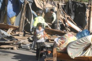 Mientras se oye el ruido de una motosierra que muerde el tirante de una casilla, en el asentamiento La Veredita, de Villa Soldati, Noelia, recién desalojada, anda furiosa con un papel impreso y firmado en la mano. “Es para cobrar el subsidio”, dice desde el otro lado de las vallas que custodia la Policía Federal, en la esquina de Lafuente y Riestra. La joven, rodeada de uniformados de la Metropolitana, resume en estos términos la negociación con el Ministerio de Desarrollo Social porteño: “Nos dijeron que agarráramos un cheque por 700 pesos o nos cagaban a palos”. A la vuelta, sobre la calle Portela, los ocupas rechazan la primera de las 10 cuotas del subsidio pero no la sexta orden de desalojo. Su delegada, Yanina Maza, insiste: “¿Quién carajo te alquila en Capital por esa plata?”. Casi todas las veredas fueron despejadas, en total, 245 personas, entre mujeres, hombres y niños.