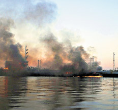 Los restos en llamas del buque tanque argentino Polaris, transporte de unas 2600 toneladas de combustible, resistía anoche los intentos de las prefecturas argentina y paraguaya por apagarlo. Había explotado el viernes en el río Paraguay tras colisionar con un carguero paraguayo y posiblemente con una lancha privada, cuyos restos fueron encontrados ayer a última hora. Por entonces, se encontraban desaparecidas al menos cuatro personas: dos de los 17 tripulantes de la embarcación argentina y dos de la lancha. Las tareas de lucha contra el fuego se vieron entorpecidas por la distancia a la zona donde está varado el buque del lado argentino, a unos 50 kilómetros aguas abajo de Puerto Pilcomayo, Formosa. “Hasta el momento no hubo derrame de combustible”, aseguraba ayer el jefe de Prefectura José Luis Domínguez.