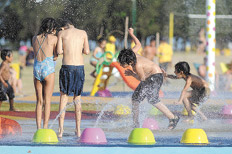 La novedad, ayer, fueron los juegos de agua, inaugurados este año, la principal atracción para los chicos. “Es la primera vez que vengo con mis sobrinos. Vinimos desde el mediodía porque este año no van a poder irse de vacaciones”, dice Margarita Donoso. Elías, de 10 años, uno de los sobrinos, comentó que “está muy bueno venir a esta playa porque nos divertimos mucho”. Los hermanos, de 3 y 5 años, se refrescan bajo la lluvia.