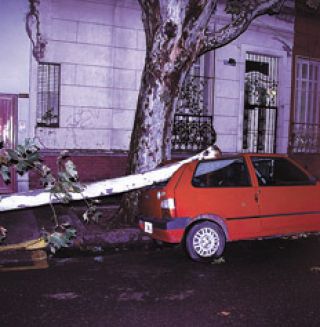 Anoche, la calle Doblas, entre Rivadavia y Chaco –pleno barrio de Caballito–, estaba obstruida por un añoso árbol, que rompió la reja del Parque Rivadavia hasta apoyarse en el balcón de un departamento. Sólo en la plaza de Pompeya, cinco árboles habían sido derribados y un gran cartel de publicidad estaba caído sobre dos autos. En Villa Soldati, varios centímetros de agua cubrían el asfalto de las calles próximas al Riachuelo, que había desbordado. En la Autopista 25 de Mayo volaron casillas de peaje y, en el edificio del Ministerio de Desarrollo Social, andamios de obra cayeron sobre un automóvil que circulaba por el lugar.