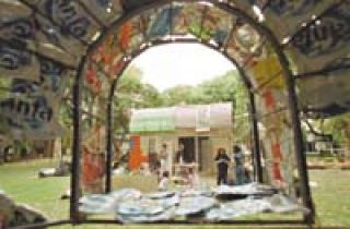 La experiencia en los bosques de Palermo reúne a distintos actores: un grupo de arquitectas de la UBA nucleadas en el Arca Group, “una ONG que pretende trabajar con lo que quedó después del diluvio”, según se definen; una cooperativa de recicladores del Bajo Flores, que fabrican vasos y floreros con botellas de vidrio; artistas que exponen obras realizadas con restos de hierro, papel, cartón y plástico, y hasta el inventor Antonio Urdiales, que diseñó una minifábrica de agua mineral, con un camalote que –asegura– elimina nitritos, metales pesados y compuestos clorados y purifica 20 litros de agua por día.