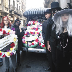 Organizaciones de músicos concretaron ayer frente a la Legislatura porteña el simulacro de un sepelio del bloque de legisladores PRO, “ya que sus legisladores votan positivamente leyes que luego son vetadas por Macri”. Se referían a las 22 leyes que el jefe de Gobierno, Mauricio Macri, vetó entre fines de 2011 y principios de 2012. Entre ellas, la ley de reconocimiento de la actividad musical, que beneficia a los músicos mayores de edad.